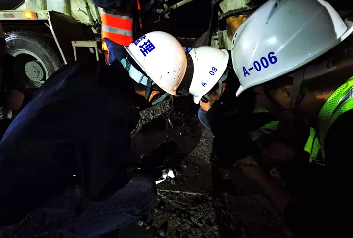 據(jù)悉,本次澆筑混凝土量達(dá)到1400立方,屬大體積混凝土澆筑,控制混凝土溫升、延緩降溫速度、減少混凝土收縮、提高混凝土極限拉伸是施工控制關(guān)鍵點(diǎn)。茂名港務(wù)中心項(xiàng)目管理部全體管理人員發(fā)揮“敢打硬仗、能打硬仗”的優(yōu)良作風(fēng),日夜奮戰(zhàn)在施工一線,精心組織策劃,明確方案中混凝土入模溫度、鋼筋偏移、模板跑偏、澆筑流程等質(zhì)量控制要點(diǎn),扎實(shí)做好施工交底工作,抓細(xì)過程管控,合理調(diào)配生產(chǎn)資源,確保了工程進(jìn)度、質(zhì)量、安全文明施工可控,有效保障大體積混凝土的澆筑質(zhì)量。經(jīng)過充分的準(zhǔn)備,場(chǎng)芯第一塊底板開始澆筑,數(shù)十輛攪拌車來回作業(yè)為其補(bǔ)充混凝土,每個(gè)環(huán)節(jié)緊密相扣,經(jīng)過25多個(gè)小時(shí)爭(zhēng)分奪秒的奮戰(zhàn),在2月3日晚上,第一塊底板順利完成澆筑。