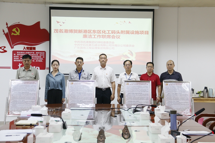 5月20日,根據(jù)集團黨委工作部署,集團紀(jì)委與茂名港博賀新港區(qū)東區(qū)化工碼頭附屬設(shè)施工程項目施工單位中石化五建華南分公司和監(jiān)理單位廣東國信工程監(jiān)理集團共同召開廉潔工作聯(lián)席會議,標(biāo)志著項目廉政工作聯(lián)動會商機制正式建立。集團黨委委員、紀(jì)委書記、監(jiān)察專員陳軍主持會議,各參建單位分管紀(jì)檢監(jiān)察工作領(lǐng)導(dǎo)、項目負(fù)責(zé)人、關(guān)鍵崗位人員近20人參加了本次會議。