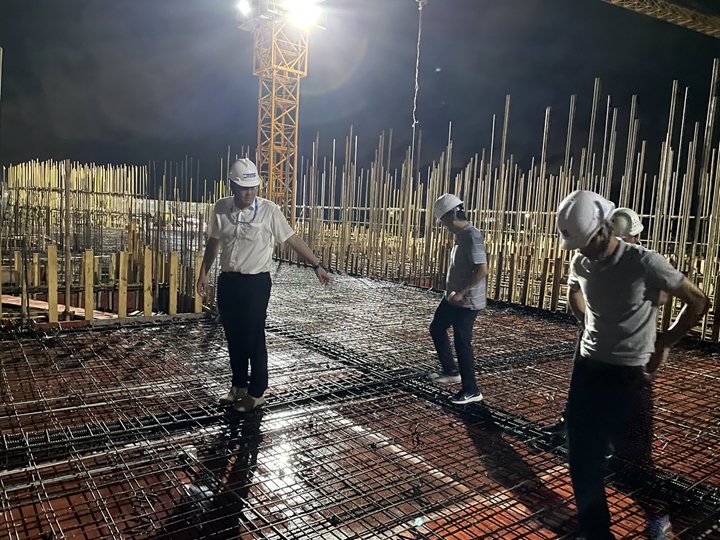 梁板的澆筑必須進(jìn)行連續(xù)施工方能保證質(zhì)量。由于施工作業(yè)面廣、作業(yè)時(shí)序長(zhǎng),茂名港務(wù)中心項(xiàng)目經(jīng)理部組織參建單位作了充分的施工交底,進(jìn)行了作業(yè)前各前置工序的復(fù)查,要求保質(zhì)保量完成每一道施工工序,并強(qiáng)調(diào)了夜間作業(yè)安全措施、輪班換班要求;提前與混凝土供應(yīng)商進(jìn)行溝通聯(lián)系,做足了材料準(zhǔn)備,確,F(xiàn)場(chǎng)澆筑工作的連續(xù)性。
