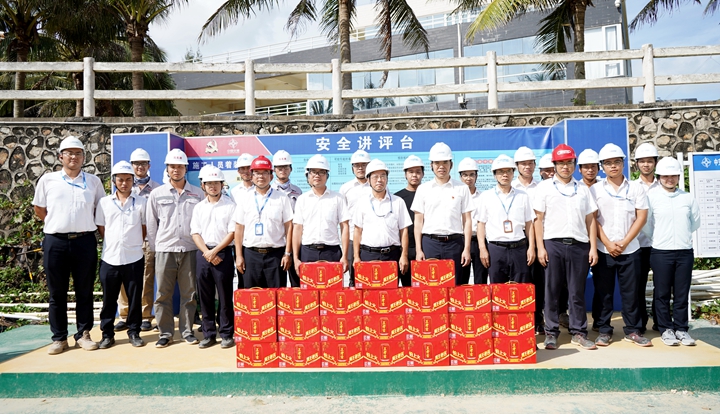滾滾熱浪,擋不住建設(shè)者們的腳步,博賀新港區(qū)仍是一派忙碌的景象。8月24日上午,蔡光章帶隊來到博賀新港區(qū)項目施工現(xiàn)場慰問各項目部一線員工,對他們冒酷暑、頂烈日,為推進(jìn)項目建設(shè)所作出的辛勤付出表示感謝。叮囑大家做好防暑降溫措就施,保護(hù)好自身安全。同時,要克難攻堅,在確保工程質(zhì)量的前提下,加快項目建設(shè)進(jìn)度,確保完成全年目標(biāo)任務(wù)。 集團工會委員向港區(qū)辦公生活區(qū)的后勤人員帶去了集團黨委和集團工會的慰問,對大家在默默辛勤奉獻(xiàn),扎實做好后勤保障服務(wù)工作表示感謝。 集團送來的關(guān)懷和“清涼”讓一線員工充滿了感動,大家紛紛表示將立足本職崗位,繼續(xù)發(fā)揚艱苦奮斗精神,以更加飽滿的狀態(tài)投入到工作中,當(dāng)好茂名港建設(shè)“革命磚”。(陳麗冰)