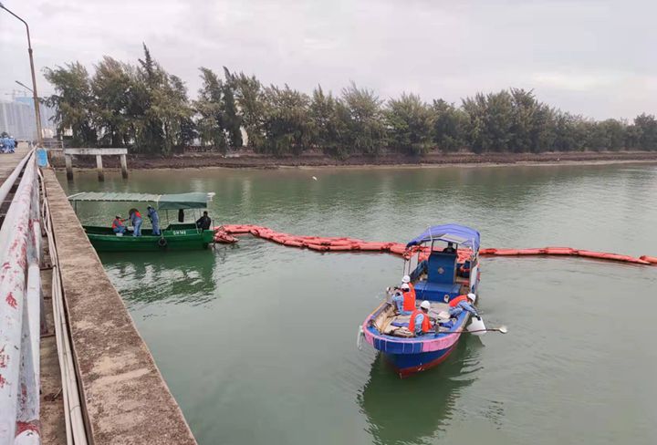 上午9:30,演練正式開始,此次演練模擬場景為收到緊急通知,某反恐怖組織意圖襲擊水東港區(qū),需立即提高安保措施。同時,碼頭正卸柴油的軟管中間段破裂,造成大面積油料泄漏。