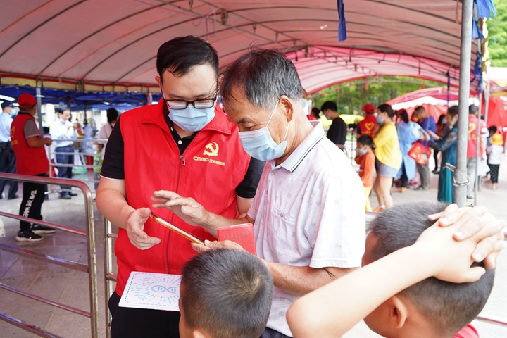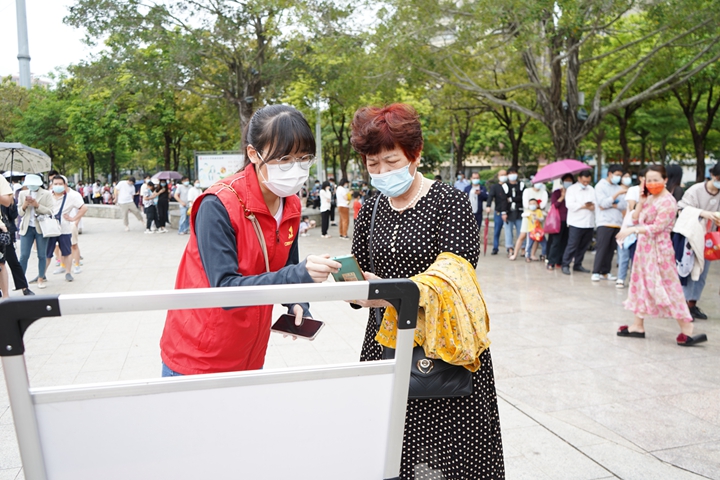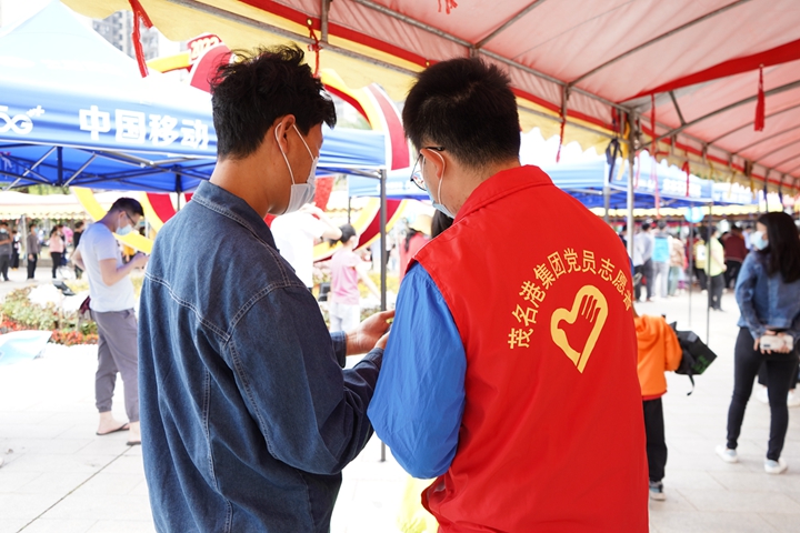 3月27日,為保障群眾核酸采樣秩序正常,根據(jù)上級(jí)安排,集團(tuán)黨委組織黨員志愿服務(wù)隊(duì)火速前往南香公園采樣點(diǎn)支援全員核酸檢測(cè)工作,讓黨旗在防控疫情斗爭(zhēng)第一線高高飄揚(yáng)。 集團(tuán)黨員志愿者們按計(jì)劃時(shí)間提前一小時(shí)到采樣點(diǎn),向醫(yī)務(wù)人員虛心學(xué)習(xí),了解檢測(cè)服務(wù)工作中最常見(jiàn)的問(wèn)題及解決方法,確保能夠?yàn)楝F(xiàn)場(chǎng)群眾提供最迅速準(zhǔn)確的志愿服務(wù)。采樣開(kāi)始后,集團(tuán)黨員志愿服務(wù)隊(duì)隊(duì)員們奔走忙碌于人流中,有序地疏導(dǎo)人流、維護(hù)秩序,督促?gòu)V大群眾遵守公共場(chǎng)所戴口罩、不聚集、保持1米線等規(guī)定。服務(wù)中,志愿者們?yōu)槿罕姶鹨山饣蟆⑾檻]、安撫緊張情緒,并指引和幫助群眾們打開(kāi)核酸檢測(cè)小程序做好信息錄入等工作。