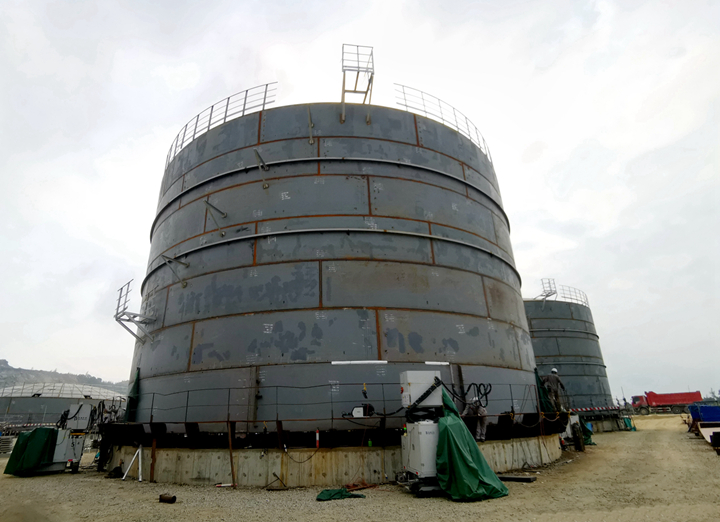 在豐收的季節(jié)里,茂名港博賀新港區(qū)東區(qū)化工倉儲項目建設(shè)進(jìn)度喜人,碩果頻結(jié):該項目已全面進(jìn)入罐體安裝階段,目前共計14臺儲罐主體已經(jīng)安裝完成,儲罐附件及其他罐組儲罐安裝正在如火如荼地進(jìn)行中。