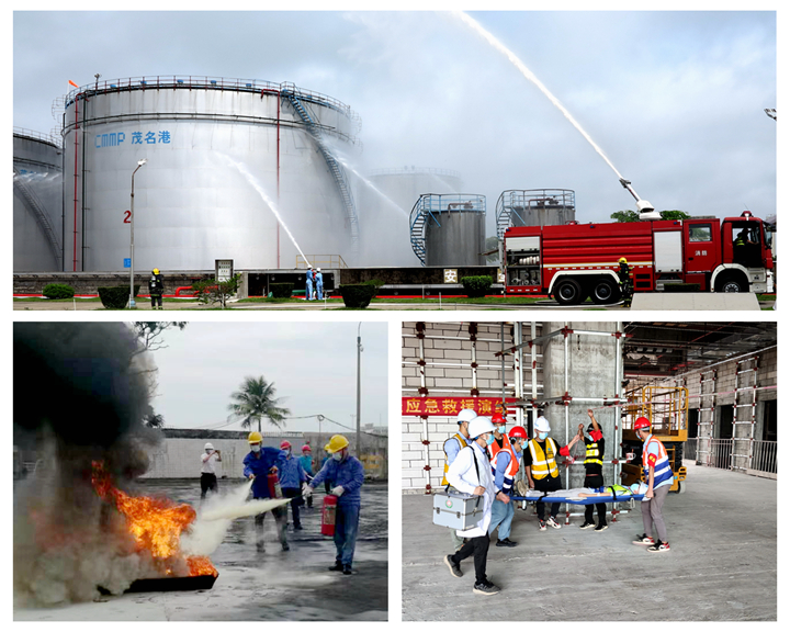 各單位負責人親自指揮、貼近實際、協(xié)同演練是本次演練的特點。中油王港公司針對油罐受雷擊著火和碼頭卸船軟管泄漏進行綜合演練,并邀請電白區(qū)消防救援大隊聯(lián)合演練,場面逼真,貼近實戰(zhàn);油品碼頭工程項目部聯(lián)合博賀海事處、電城鎮(zhèn)衛(wèi)生院進行水上作業(yè)防淹溺專項演練,醫(yī)護人員現(xiàn)場講解落水人員急救常識和心肺復蘇搶救法,較好普及應急知識;港務中心項目部針對高處墜落進行專項演練,組織得力,取得實效;港口經(jīng)營公司開展港口設施保安及消防應急演練,反恐措施得當;化工倉儲項目結(jié)合高溫天氣,開展受限空間作業(yè)人員中暑演練,提升應急技能;東閣嶺礦石項目部開展高處落石專項演練,達到預期演練目標;濱海物業(yè)公司開展食品中毒演練,處置迅速有效;油品碼頭安裝工程和化工碼頭項目開展防臺防汛演練,提高“三防”應急處置能力。