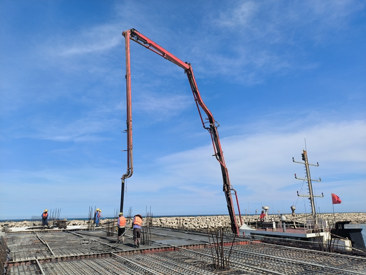 6月29日下午,茂名港博賀新港區(qū)東區(qū)油品碼頭工程水域公用管廊棧橋現(xiàn)澆面層完成澆筑,完成了油品碼頭項(xiàng)目公共管廊橋與碼頭全面貫通,實(shí)現(xiàn)了“海陸對(duì)接”,一舉貫通了博賀新港區(qū)的“大動(dòng)脈”。