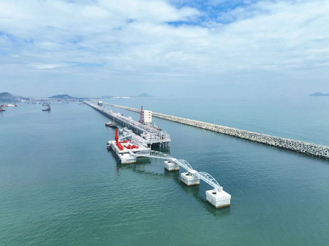 實(shí)干興港,把藍(lán)圖轉(zhuǎn)化為實(shí)景圖。百年前,博賀港因優(yōu)良的深水條件,孫中山在《建國方略》中將其列入九大商港之一。在這乘風(fēng)破浪、跨越發(fā)展的十年里,茂名港博賀新港區(qū)規(guī)劃建設(shè)的33個碼頭泊位逐步付諸建設(shè),2012年12月,博賀新港區(qū)在荒灘曠野中正式動工,2018年以來東、西防波堤、博賀灣大道、博賀灣大橋、粵西LNG填海造陸、土地一級開發(fā)等項目陸續(xù)建成,推動的茂名港博賀新港區(qū)10萬噸級通用碼頭于2019年3月正式開港運(yùn)營。當(dāng)前,集團(tuán)正圍繞茂名港口岸擴(kuò)大開放工作部署,全力推進(jìn)10萬噸級成品油碼頭、5萬噸級化工碼頭、81萬m3化工倉儲項目建設(shè),預(yù)計年底前全面建成,茂名港博賀新港區(qū)港口吞吐能力將由1600萬噸/年增長至超3000萬噸/年,區(qū)域性重要港口地位凸顯。