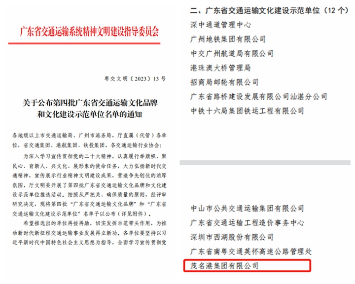 日前,廣東省交通運輸系統(tǒng)精神文明建設(shè)指導(dǎo)委員會公布了第四批廣東省交通運輸文化品牌和文化建設(shè)示范單位名單,茂名港集團被評為“廣東省交通運輸文化建設(shè)示范單位”。