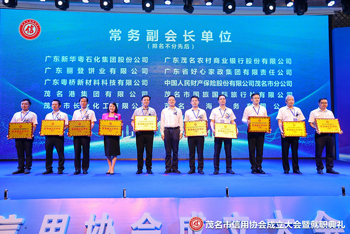 為加快推動茂名市社會信用體系建設(shè),弘揚誠實守信精神,助力提升茂名市企業(yè)信用建設(shè)水平,7月30日,市信用協(xié)會成立大會暨就職典禮在茂名溫德姆至尊酒店隆重舉行,茂名港集團(tuán)任首屆常務(wù)副會長單位。集團(tuán)黨委副書記、總裁肖炳璋出席了活動。