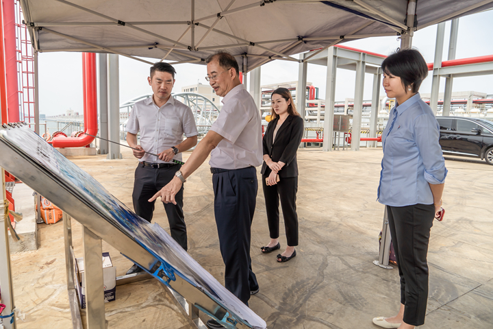 8月17日下午,粵港澳大灣區(qū)供應(yīng)鏈研究院執(zhí)行院長邱國宣一行到訪集團調(diào)研。集團黨委書記、董事長王志華,黨委副書記、常務(wù)副總裁朱廣宇及相關(guān)負責人陪同調(diào)研交流。 邱國宣一行深入博賀新港區(qū)一線建設(shè)現(xiàn)場,在東區(qū)油品碼頭E2泊位前,朱廣宇向客人詳細介紹了茂名港博賀新港區(qū)的項目規(guī)劃和項目建設(shè)情況。