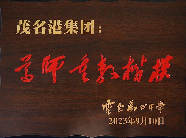 9月27日,茂名市電白第四中學(xué)校長(zhǎng)蔣榮昌率領(lǐng)學(xué)校領(lǐng)導(dǎo)班子一行到訪茂名港集團(tuán)博賀新港區(qū)綜合辦公樓,代表學(xué)校全體師生向茂名港集團(tuán)贈(zèng)送“尊師重教楷!迸曝乙约啊白饚熤亟滔冗M(jìn)單位”榮譽(yù)證書,以感謝茂名港集團(tuán)多年來一直關(guān)心支持濱海新區(qū)教育事業(yè)發(fā)展,為電白第四中學(xué)的教育發(fā)展作出的貢獻(xiàn)。濱?毓晒究偨(jīng)理梁祖釗代表茂名港集團(tuán)受贈(zèng),并感謝電白第四中學(xué)全體師生對(duì)茂名港集團(tuán)的認(rèn)可。