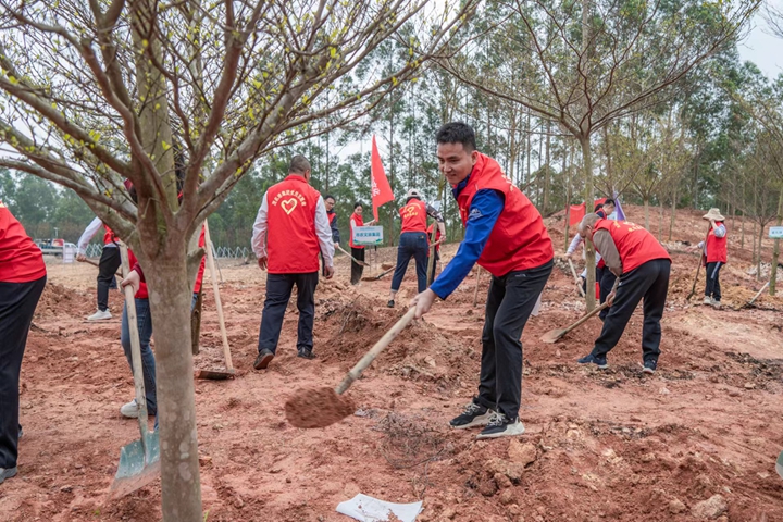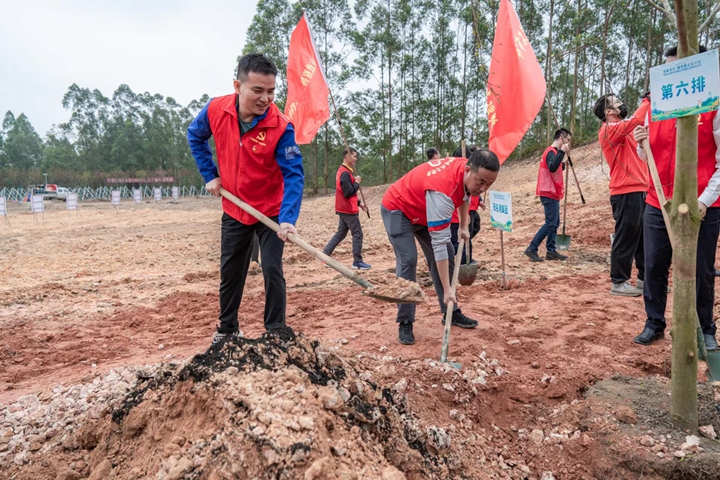 黨員志愿者們懷著滿腔熱情,早早到達了活動現(xiàn)場。大家迅速集結(jié),活力充沛、意氣風發(fā),展現(xiàn)出茂名港人特有的精神風采。在觀看完省國資委黨委書記、主任余鋼等領導致辭,以及“綠美廣東·國資國企在行動啟動”主會場視頻直播之后,市國資委黨委書記、主任梁劍輝致辭并宣布植樹活動正式開始,集團黨員志愿者干勁十足、躍躍欲試,扛起鐵鍬和鋤頭,大步大步向前走,展現(xiàn)出了強烈的參與意愿和行動力。