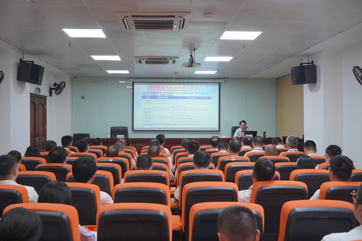 8月29日,茂名港集團(tuán)組織開展學(xué)習(xí)貫徹黨的二十屆三中全會精神宣講報(bào)告會,會議邀請中共茂名市委黨校常務(wù)副校長何小春教授作專題宣講。集團(tuán)黨委副書記、總裁朱廣宇主持會議。