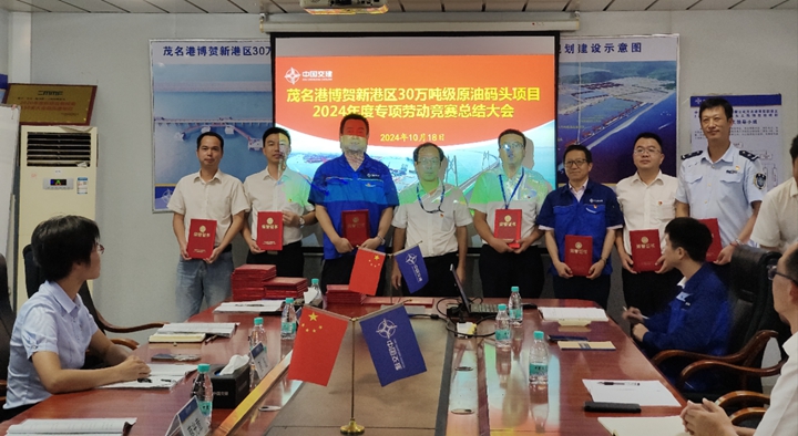 10月18日,茂名港博賀新港區(qū)30萬噸級原油碼頭工程項目臨時黨支部在項目部會議室召開2024年“奮戰(zhàn)120天”專項勞動競賽總結(jié)表彰大會,對自開展勞動競賽和成立黨員先鋒突擊隊以來為項目建設默默奉獻、表現(xiàn)優(yōu)異的優(yōu)秀黨員干部和先進個人進行表彰。集團黨委委員、總工程師蔡光章出席會議并講話,集團黨群工作部相關(guān)人員陪同出席會議。