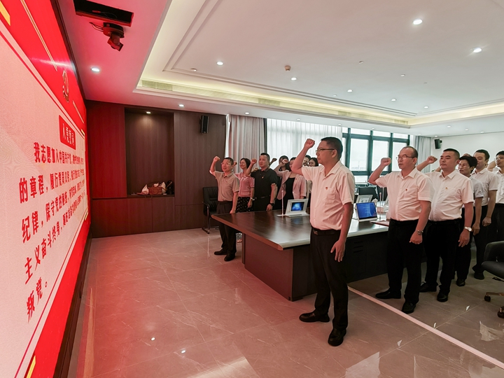 為深入學(xué)習(xí)貫徹習(xí)近平新時代中國特色社會主義思想,進一步加強黨建引領(lǐng),推動黨建與業(yè)務(wù)深度融合,7月15日,茂名港集團機關(guān)黨支部與中國人民銀行茂名市分行宏觀審慎與金融市場管理科黨支部、國家外匯管理局茂名市分局黨總支聯(lián)合開展了主題黨日活動。中國人民銀行茂名市分行二級調(diào)研員嚴青,集團黨委委員、副總裁楊超燦以及雙方黨支部書記、黨員代表共20余人參加活動。